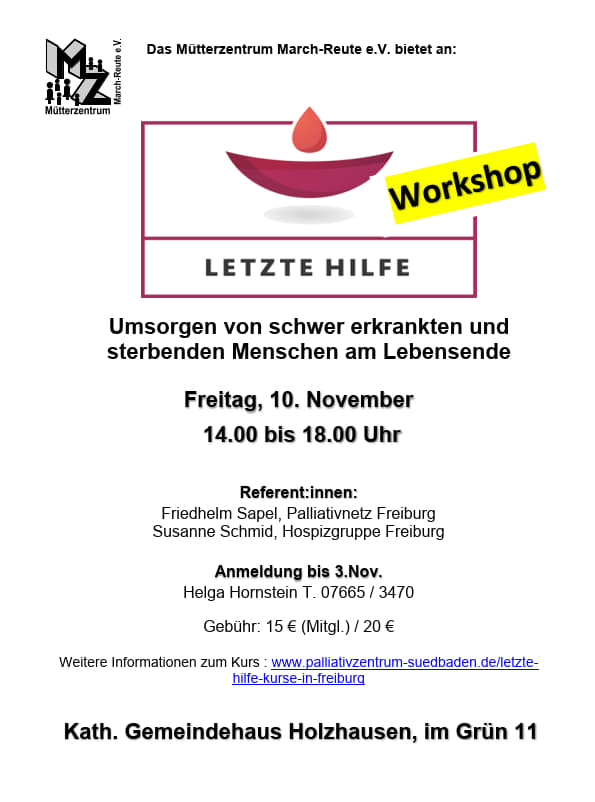 Weitere Informationen zum Kurs : www.palliativzentrum-suedbaden.de/letzte-hilfe-kurse-in-freiburg