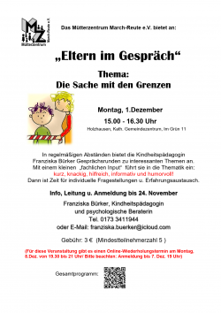 Info, Leitung und Anmeldung bis 24. Nov. bei Franziska Bürker, Kindheitspädagogin und psychologische Beraterin, Tel. 0173 3411944 oder E-Mail: franziska.buerker@icloud.com