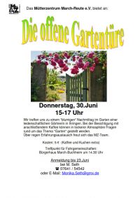 Wir treffen uns zu einem "blumigen" Nachmittag im Garten einer leidenschaftlichen Gärtnerin in Ihringen. Bei der Besichtigung mit anschließendem Kaffee können in lockerer Atmosphäre Fragen rund um das Thema "Garten" gestellt werden.