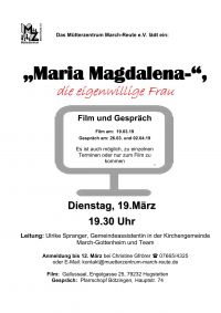 Ebenso spannend ist aber der Blick auf den eigenen Lebensfilm. Einzelne Filmepisoden regen dazu an, an zwei weiterführenden Abenden über unsere eigene Lebens- und Glaubenserfahrungen nachzudenken. Finden wir über die Lebensgeschichte der Maria Magdalena einen neuen Zugang zur Jesus-Geschichte? Gibt uns diese starke Persönlichkeit, die darum ringt ihre eigene Wahrheit zu leben, Mut für den eigenen Weg?